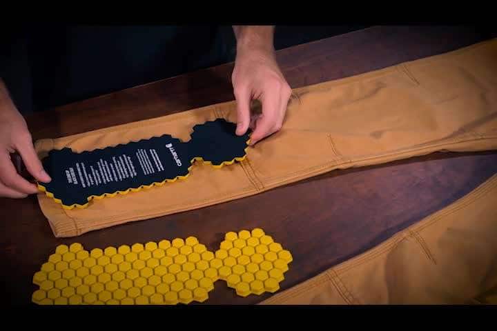 - See how to insert the knee pad into a pair of double-fronts
