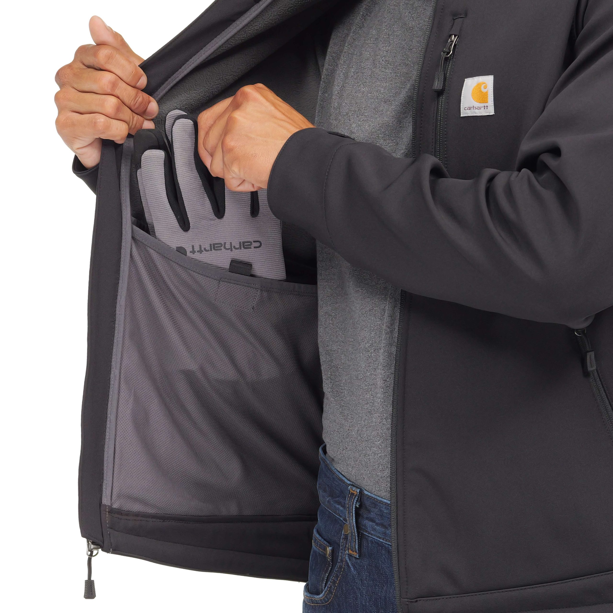 This men’s jacket gives you the flexibility to move on the job while providing rugged defense against the elements. The heavyweight softshell construction holds its own through wind, cold, and light precipitation. It features a large pocket on the inside as well as three zip pockets on the outside. Previously known as the Crowley Jacket