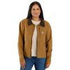 A hardworking staple for over 70 years, the legacy of the Detroit jacket is as long-lasting as its durable duck canvas. This women’s Designer Brand jacket was inspired by the classic with built-in flex for easy movement. Welt pockets and interior pockets keep the tools of your trade close by, and a snap-adjustable hem lets you customize the fit. A loose fit makes layering easy.